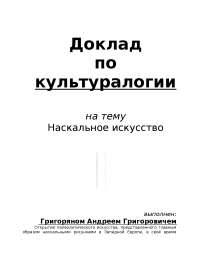 Доклад: Наскальное искусство . Открытие палеолитического искусства, представленного главным образом наскальными рисунками в Западной Европе, в своё время явилось настоящей сенсацией .