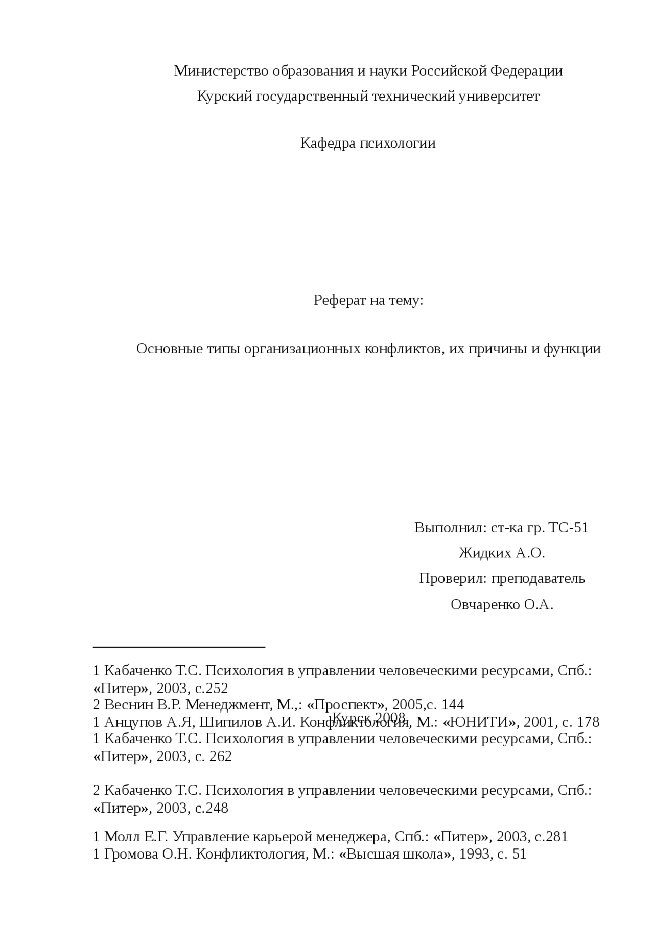 Реферат На Тему Основные Типы Организационных Конфликтов, Их Причины И Функции