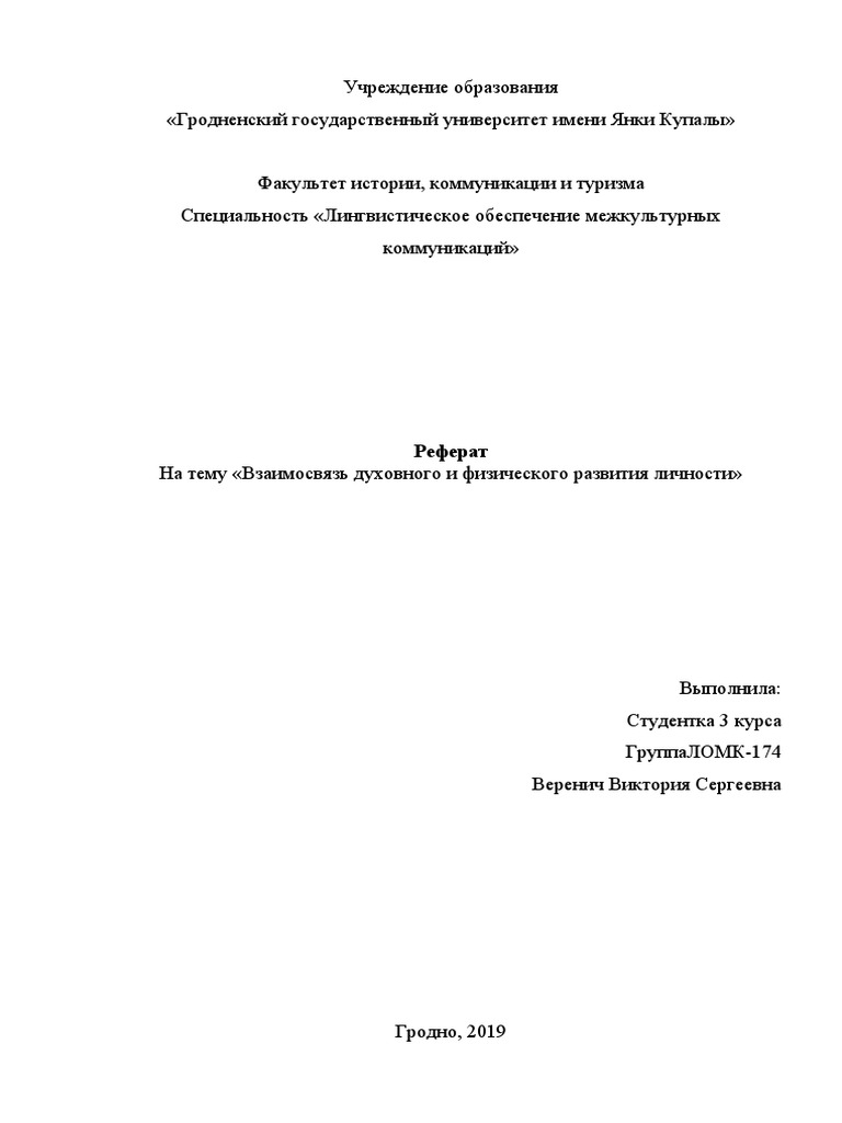 Реферат: Значение физической культуры в развитии личности