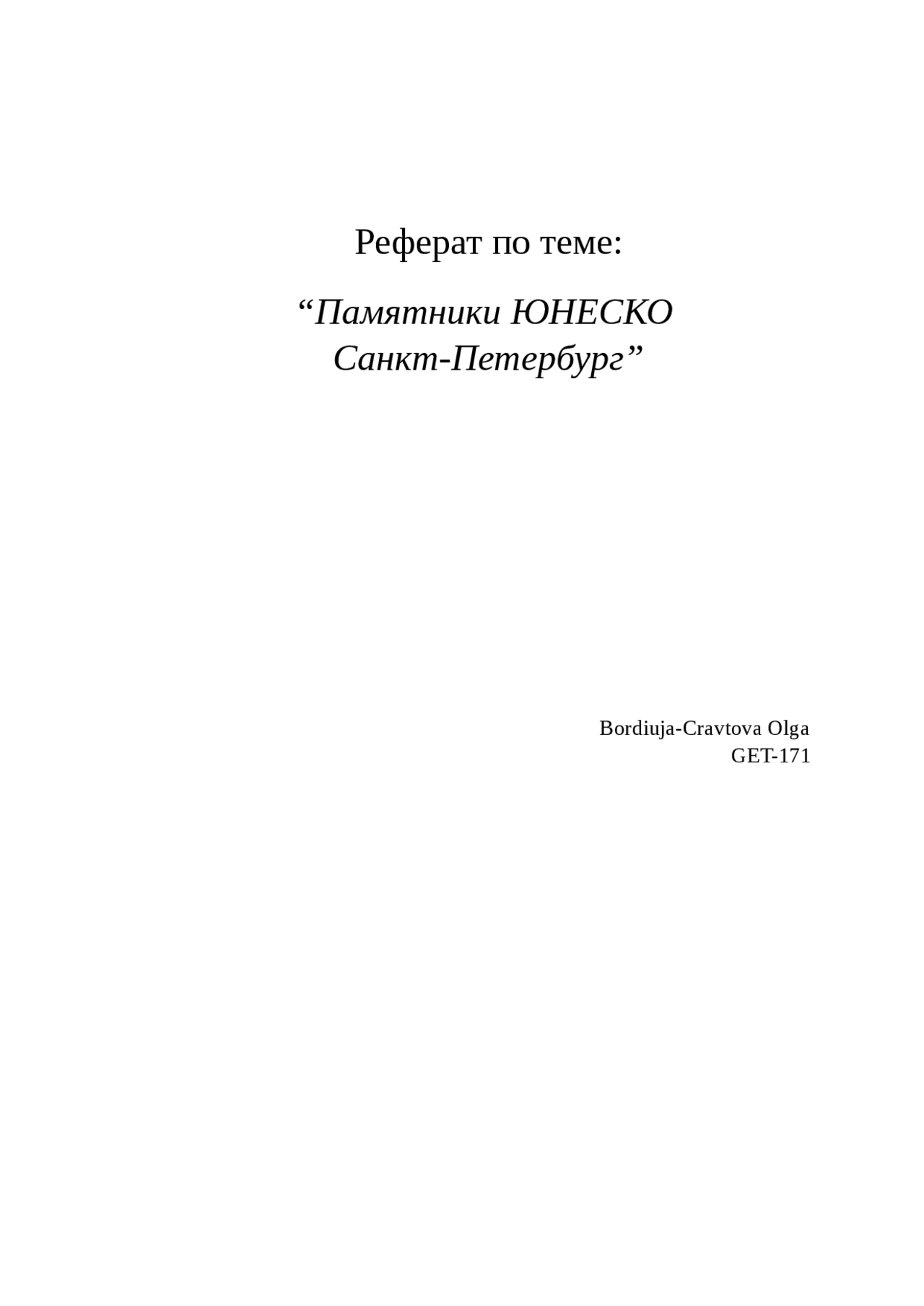 Доклад на тему «Объекты всемирного наследия ЮНЕСКО . Город . . .