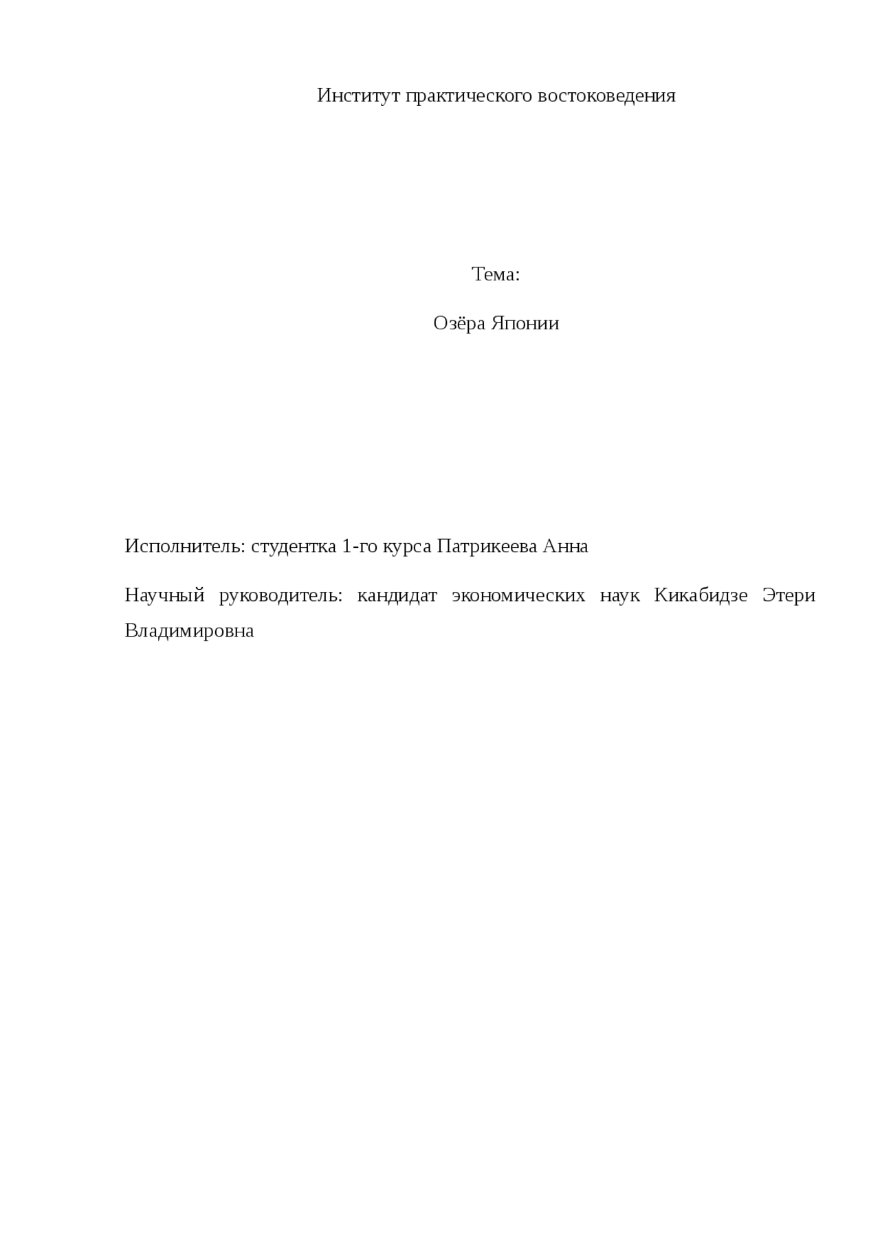 Реферат: Озёра Японии . Институт практического востоковедения . Тема: Озёра Японии . Исполнитель: студентка 1-го курса Патрикеева Анна