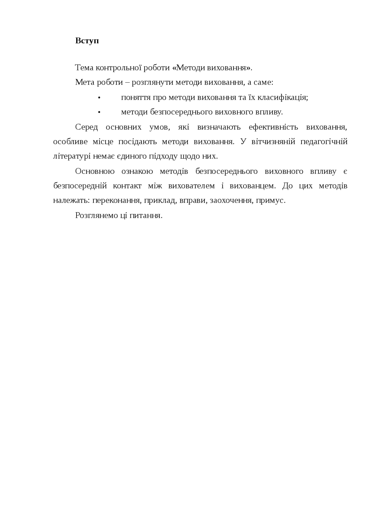 1 . Поняття про методи виховання . 2 . Класифікація методів виховання . У контрольній роботі визначено основні методи виховання, надано повну класифікацію та визначено оптимальний вибір методу виховання .