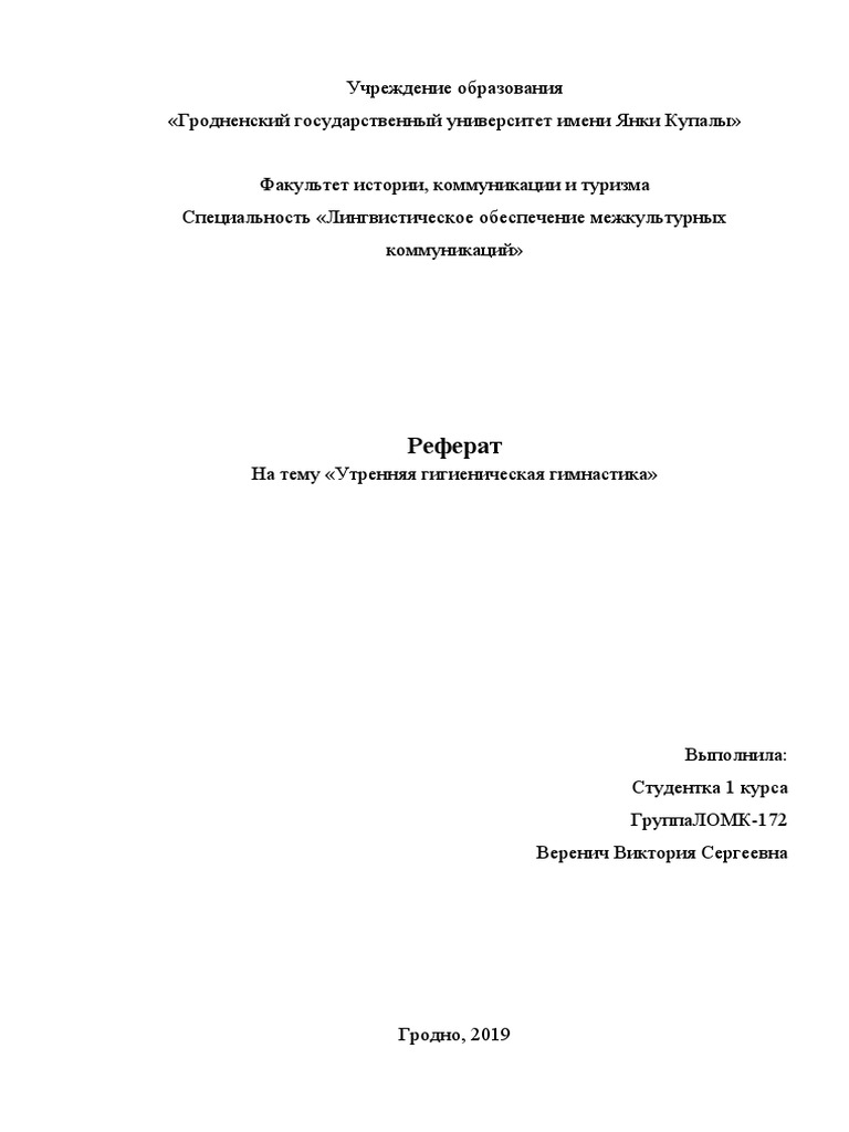Реферат: Утренняя гигиеническая гимнастика