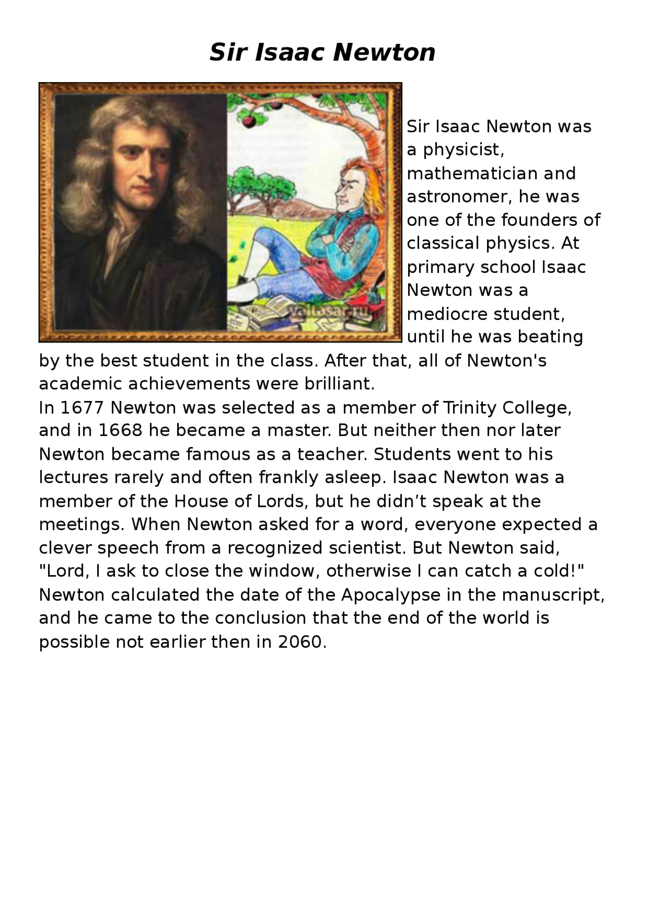 Читать реферат по английскому: "Sir Isaac Newton" Страница . . .