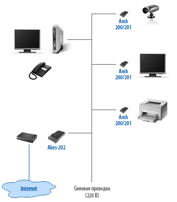 Так называемый "Интернет через электрическую розетку" . Эта технология известна еще и под названием PLC (Power Line Communication ) .