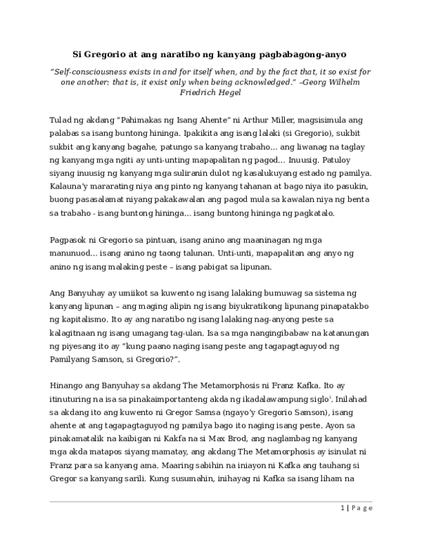 The Metamorphosis Paper Essay Example | Topics and Well . . .