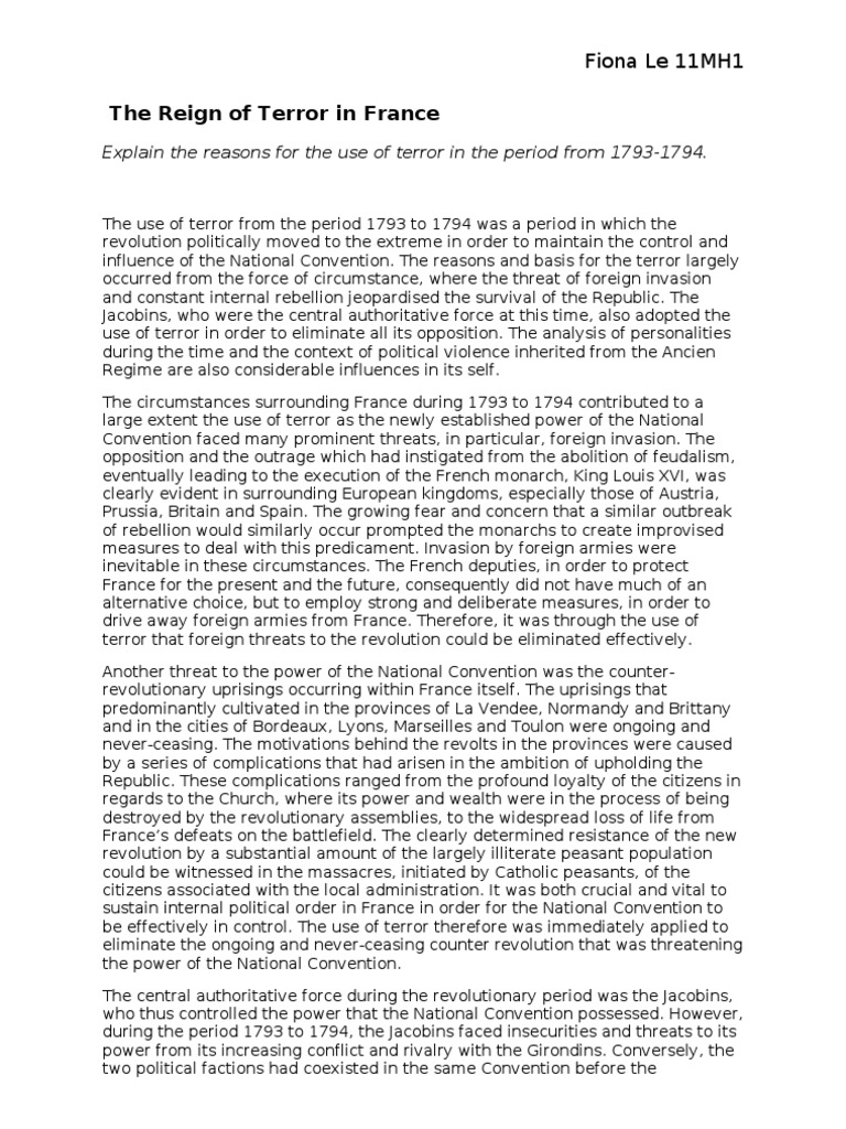 The Reign Of Terror Essay Questions