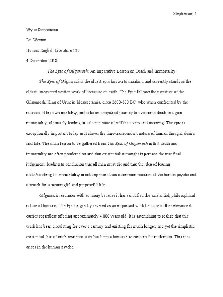 Analysis Of Immortality Through The Epic Of Gilgamesh . . .