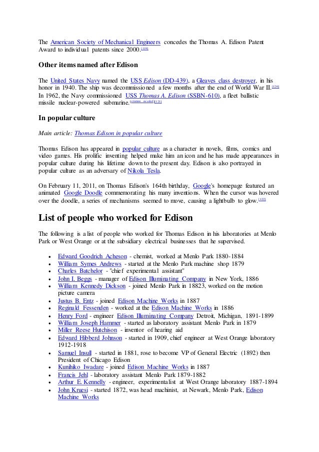 Читать реферат по английскому: "Thomas Edison Essay Research . . .