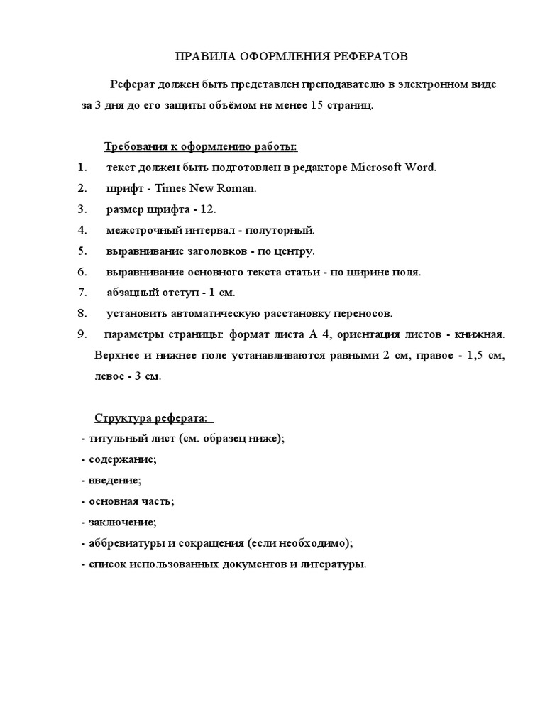 Перед оформлением реферата в электронном виде обязательно внимательно изучите его структуру . Она состоит из: титульного листа; содержания, оглавления или плана; введения; основной части;