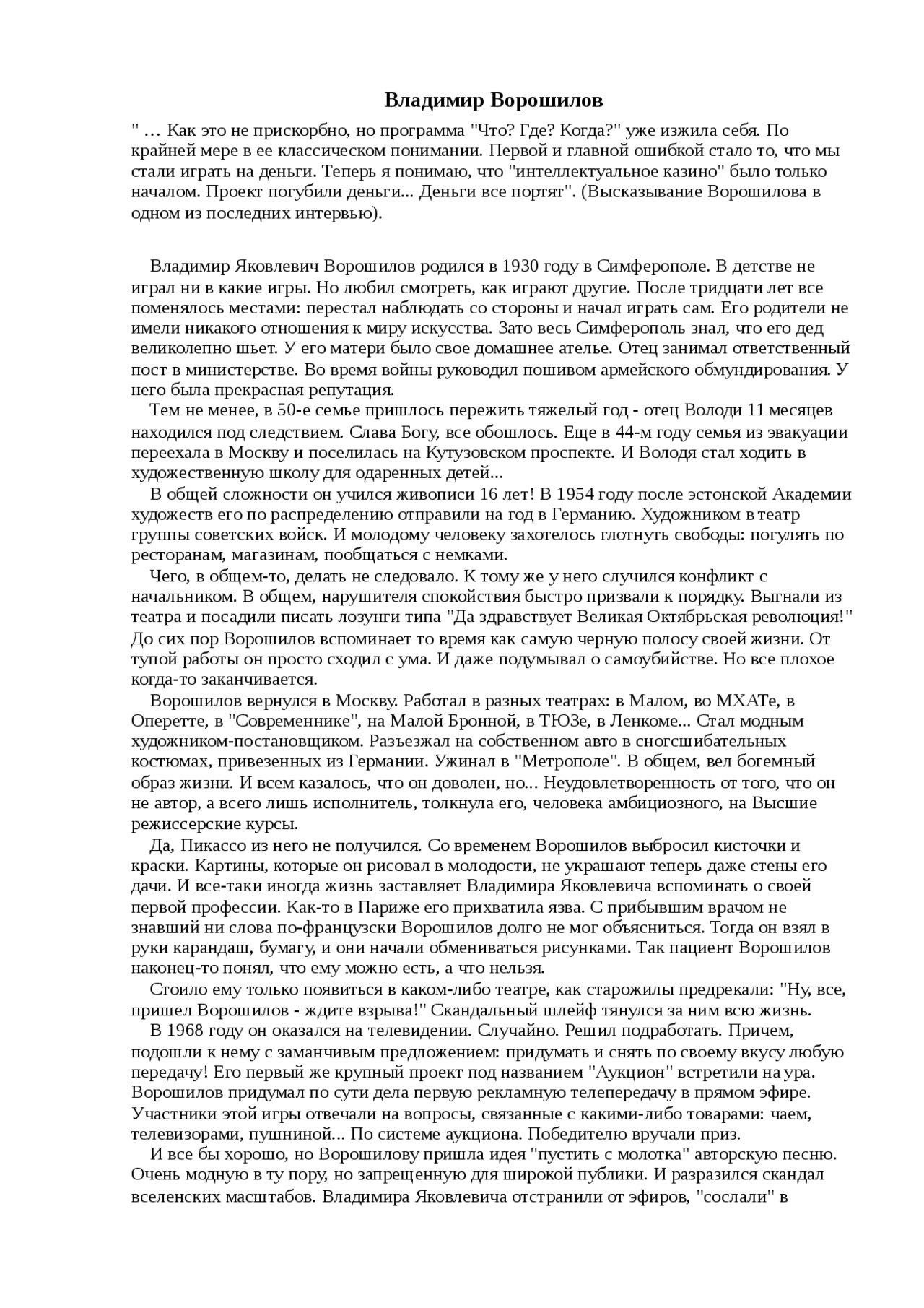 Реферат: Владимир Лобов