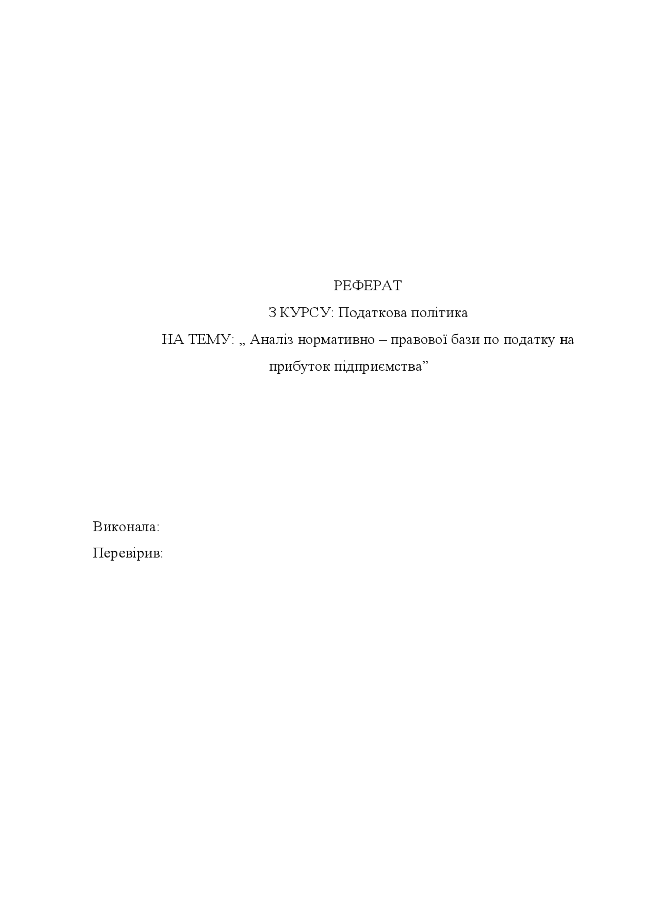 Реферат по теме Аналіз нормативно–правової бази по податку на прибуток підприємства