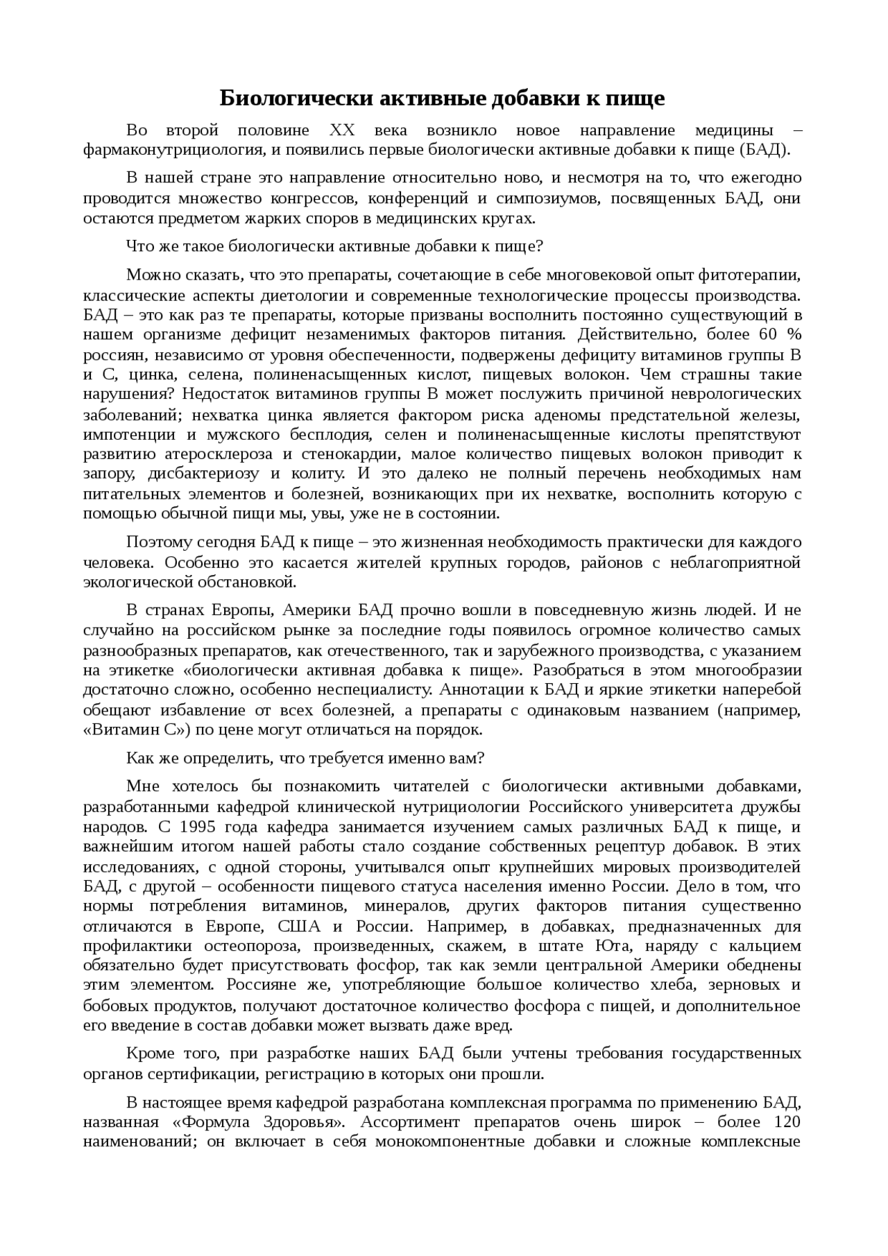 Реферат: Биологически активные добавки к пище при . . .