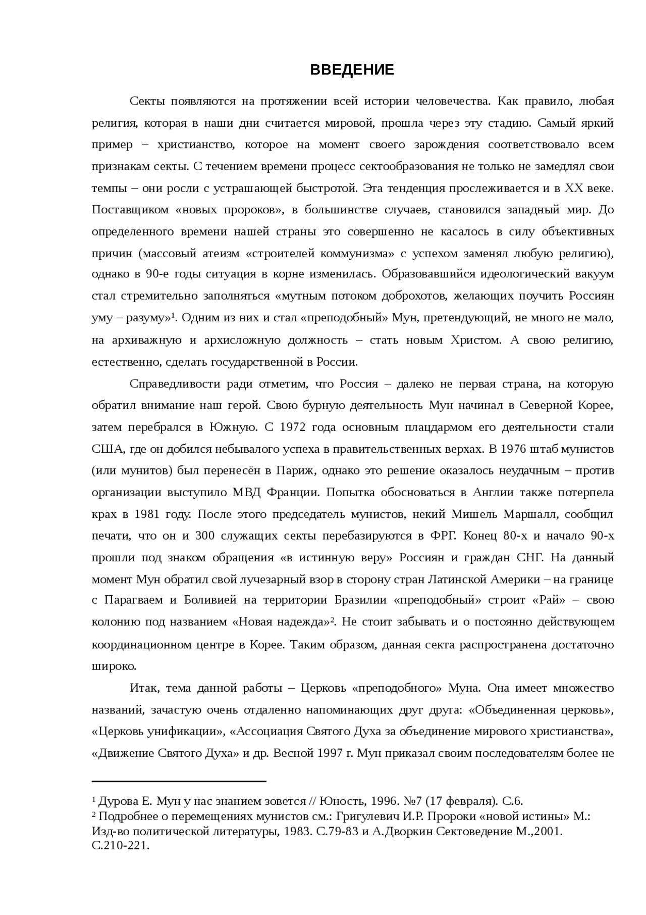 Реферат: Церковь Муна - Xreferat .com - Банк рефератов . . .