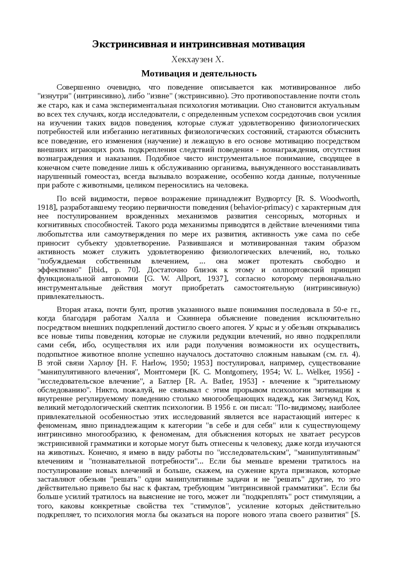 Х .Хекхаузен . Экстринсивная и интринсивная мотивация . . .