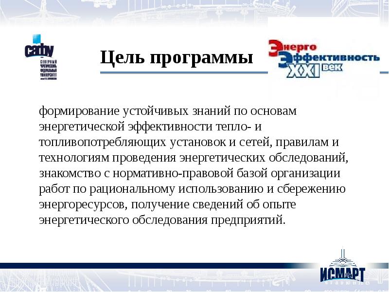Энергетическое обследование (энергоаудит) проводится в целях определения путей быстрого и эффективного снижения издержек на энергоресурсы, сокращения и исключения непроизводительных расходов (потерь), оптимизации или замены технологии производства .