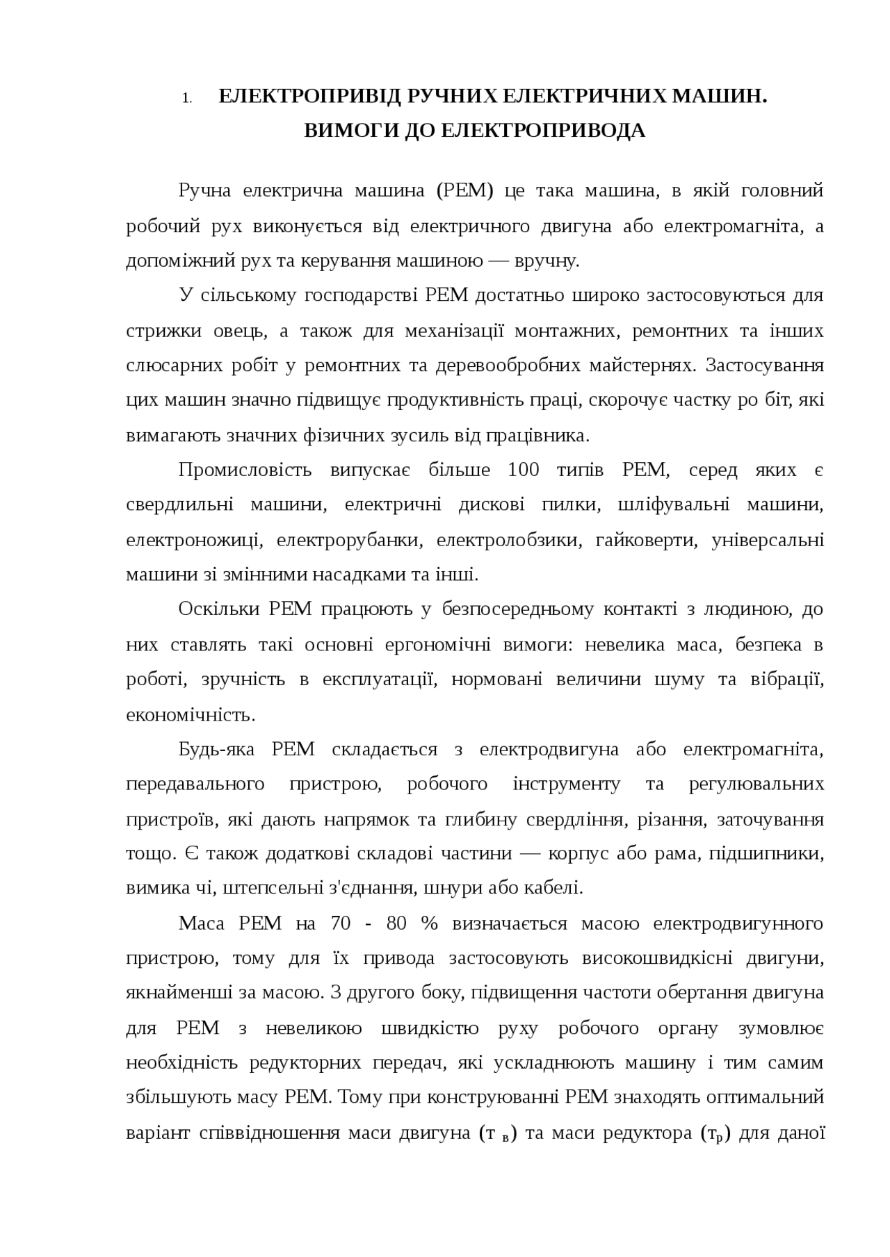 Поняття, призначення та класи ручних електричних машин (РЕМ) . Електропривід РЕМ та вимоги до нього . Різновиди електродвигунів і джерел живлення РЕМ .