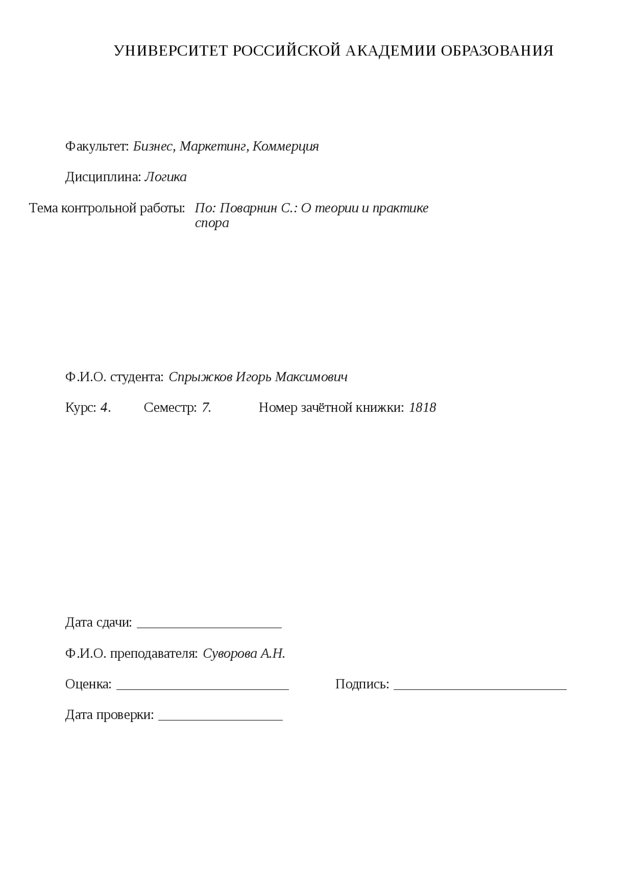 Реферат Титульный Лист Образец Техникум