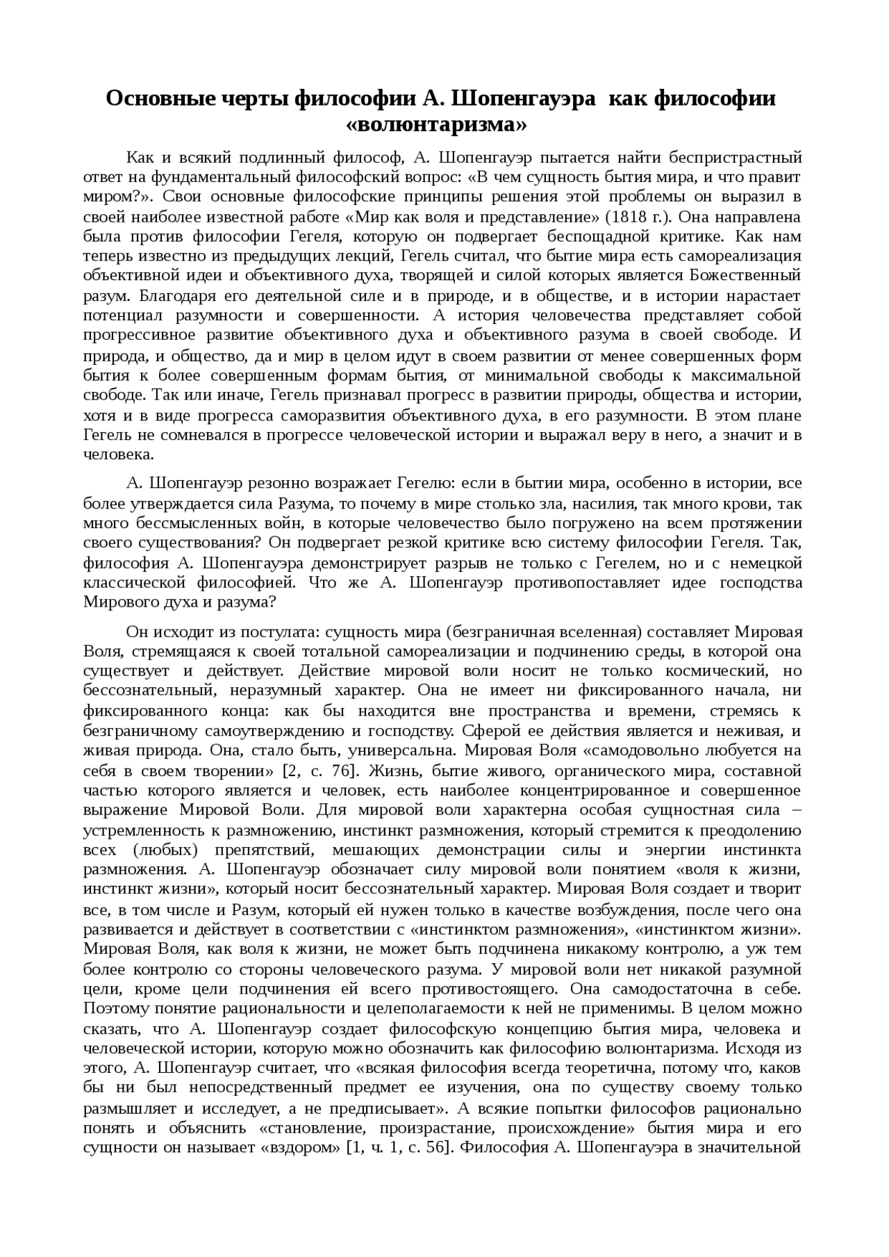 Реферат по философии на тему: Философия Шопенгауэра скачать бесплатно .🔺 Готовая работа!🔺