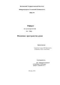 Московский Государственный Институт Международных Отношений (Университет) МИД РФ Реферат по культурологии на тему: Фламенко: пространство души Выполнила: