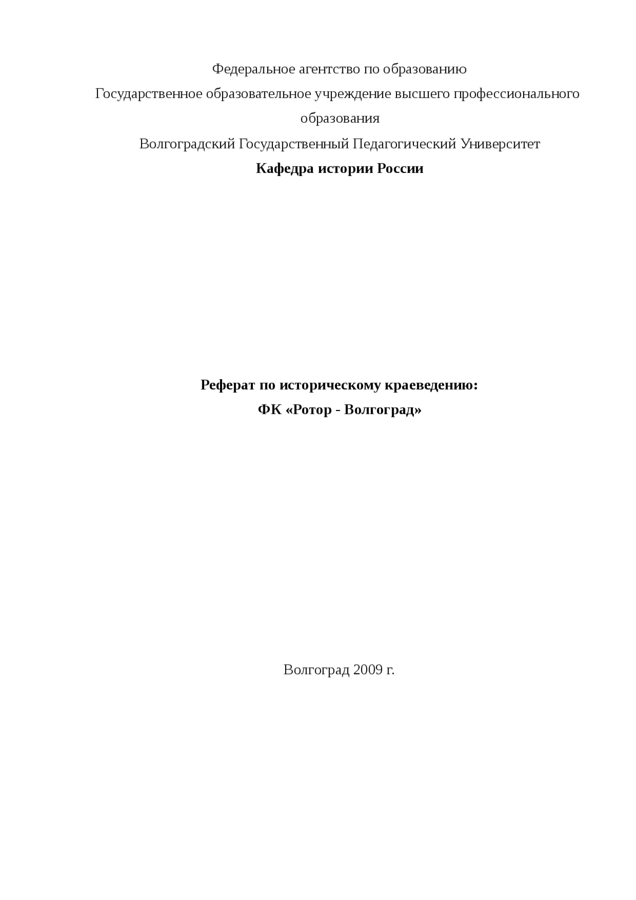 Реферат на тему "Футбольный клуб "Ротор-Волгоград" скачать . . .
