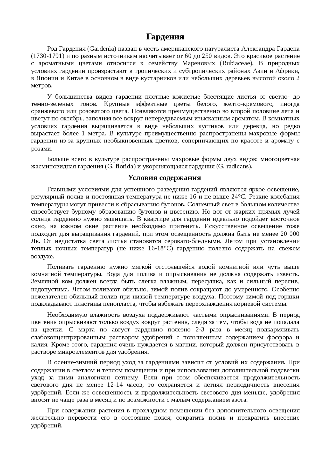Xreferat .com » Рефераты по биологии и химии » Гардения Гардения Род Гардения (Gardenia) назван в честь американского натуралиста Александра Гардена (1730-1791) и по разным источникам насчитывает от 60 до 250 видов .