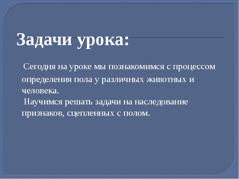 Реферат: Сцепленное с полом наследование . 2012г . Задачи . Обучающая: познакомить учащихся с хромосомным определением пола, сцепленным с полом …