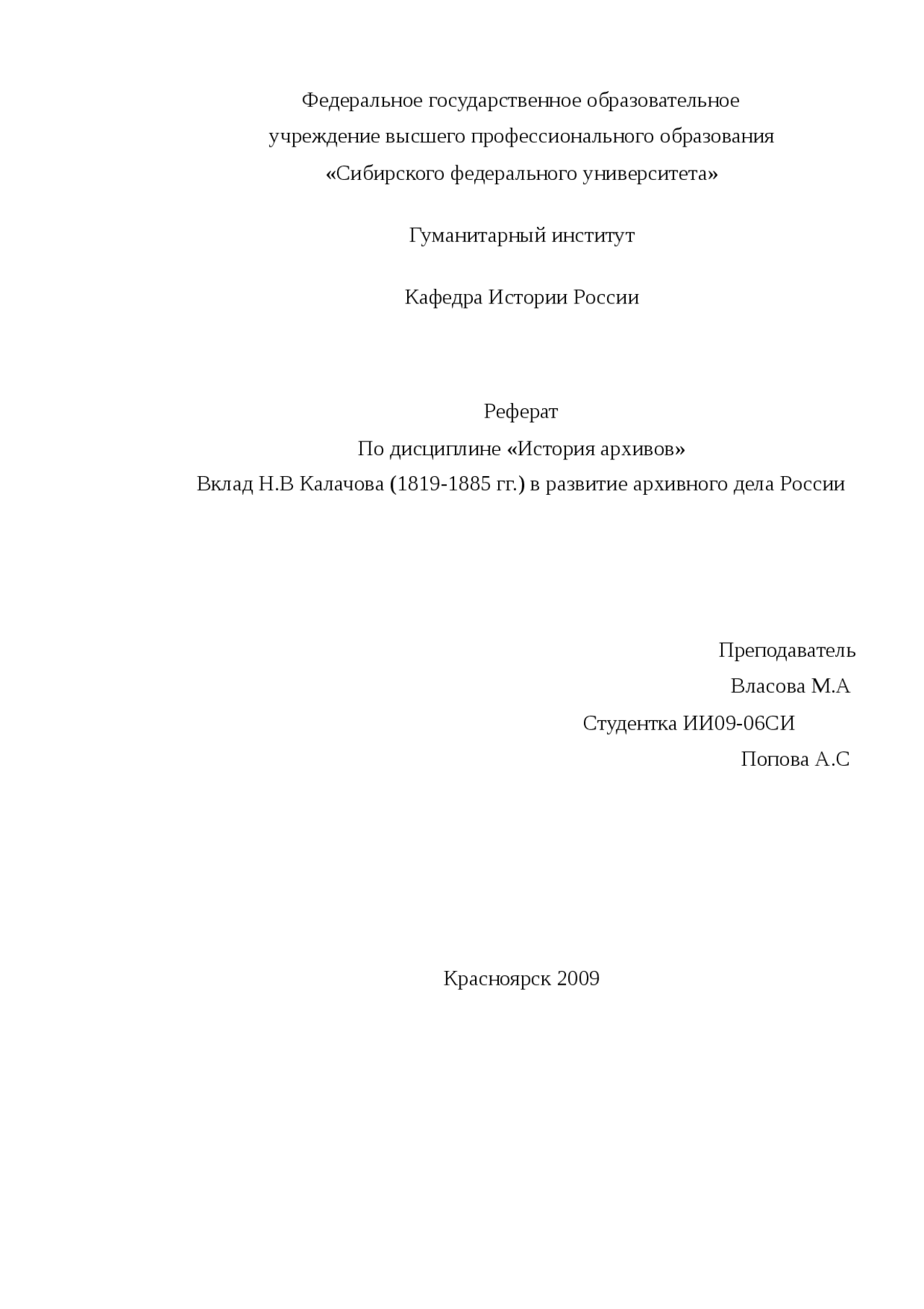 ФЕДЕРАЛЬНОЕ АГЕНТСТВО ПО НАУКЕ И ОБРАЗОВАНИЮ КРАСНОЯРСКИЙ ГОСУДАРСТВЕННЫЙ УНИВЕРСИТЕТ ИСТОРИКО-ФИЛОСОФСКИЙ ФАКУЛЬТЕТ РЕФЕРАТ по истории архивов России АРХИВЫ И …