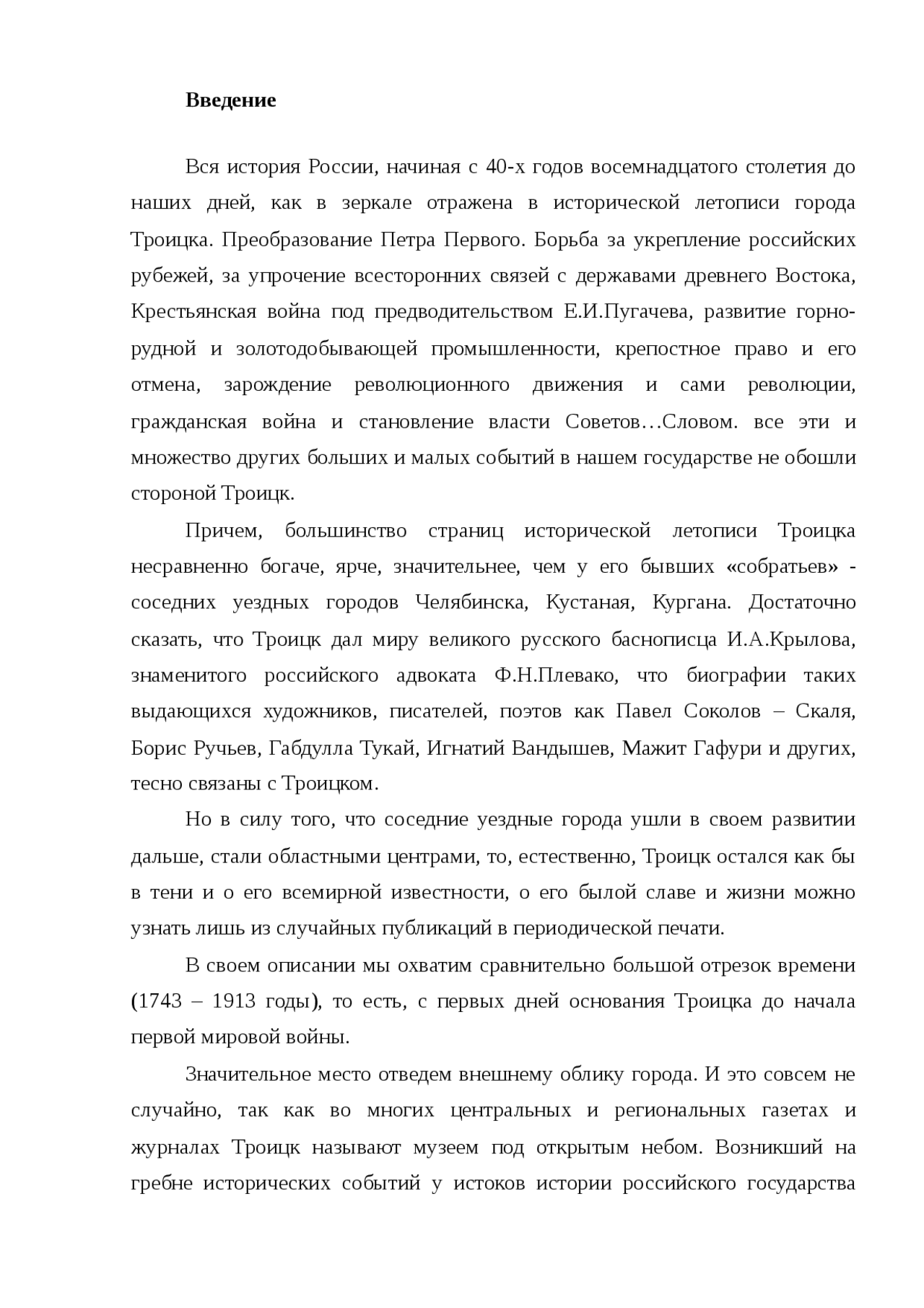 Реферат: История города Троицка в Челябинской области . . .