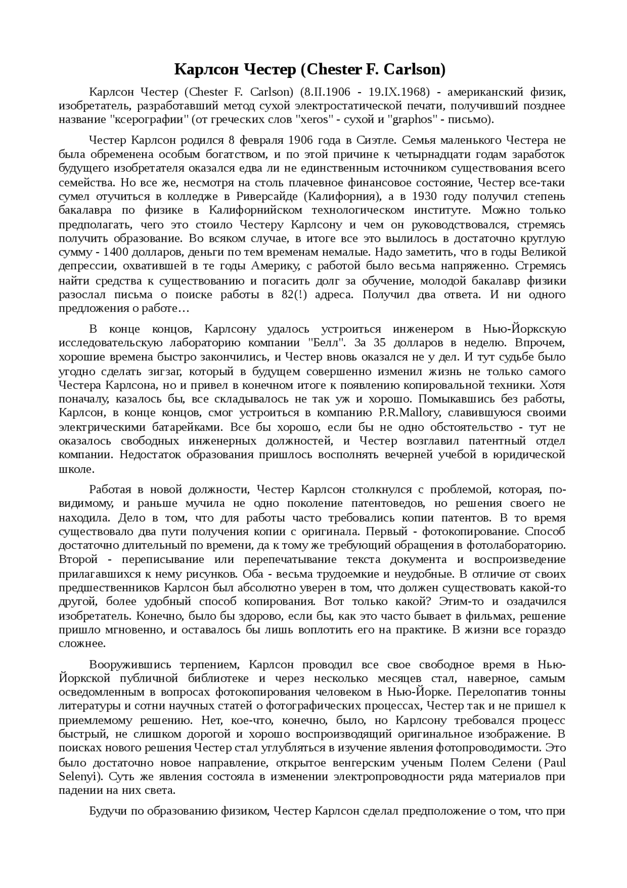 Реферат по теме Карлсон Честер (Chester F. Carlson)