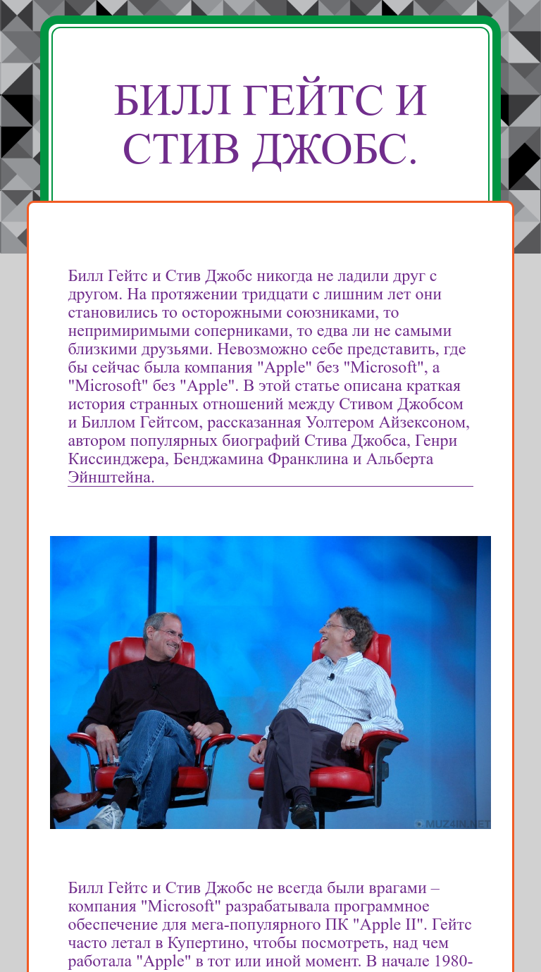 Раздел >> Рефераты по психологии с нашими примерами вы напишите, оформите и подберете тему реферат правильно! . . . Реферат по теме Конфликт между Стивом Джобсом и Биллом Гейтсом . . .