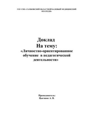 реферат по предмету Педагогика на тему: Личностно-ориентированное обучение - понятие и виды, структура и классификация, 2017, 2018-2019 год .