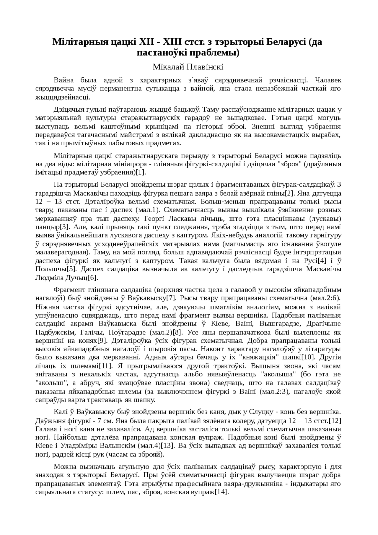 Реферат: Мілітарныя цацкі ХІІ - ХІІІ стст . з тэрыторыі Беларусі (да пастаноўкі праблемы) Мікалай Плавінскі Вайна была адной з характэрных …