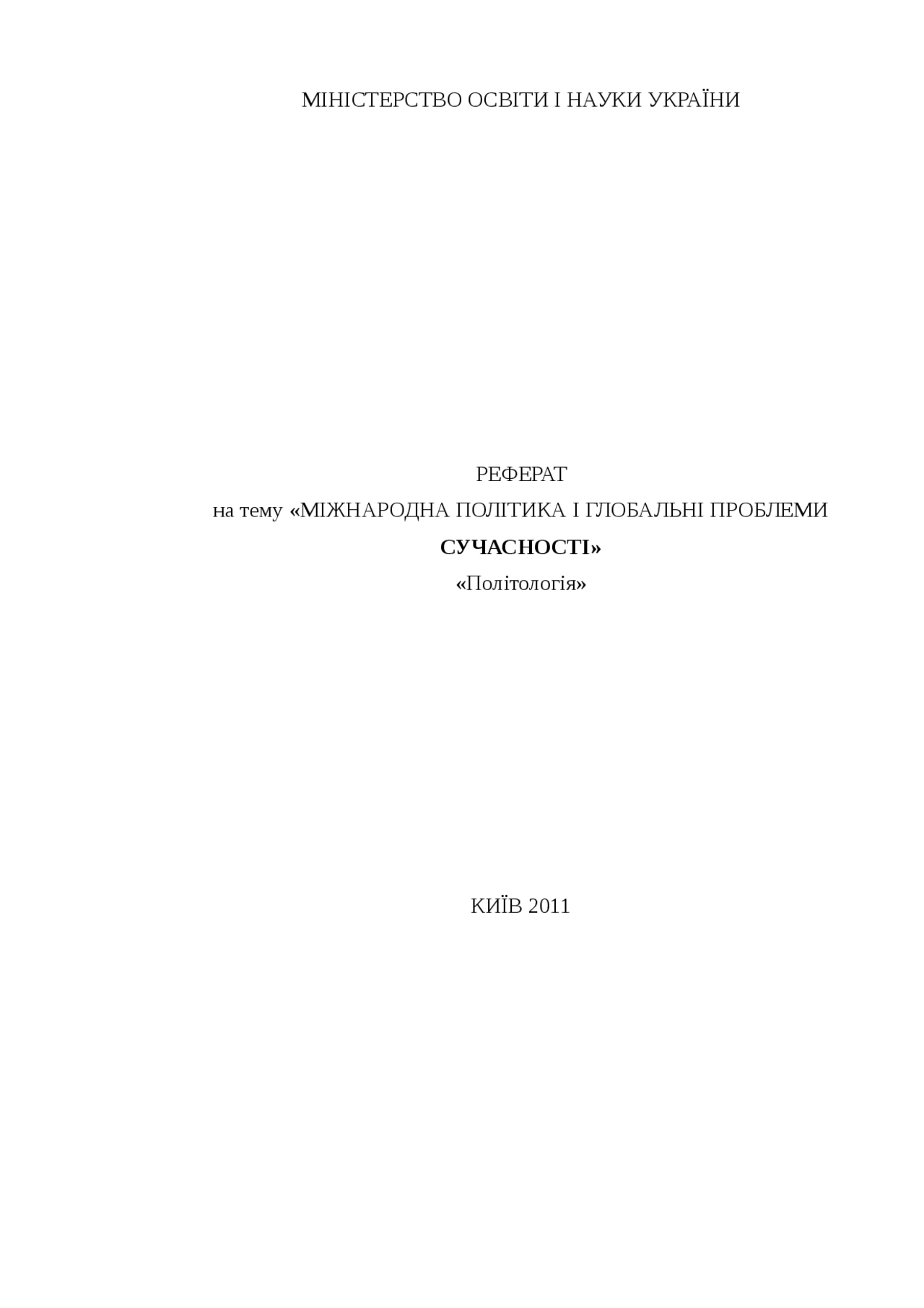 Реферат: Міжнародна політика і глобальні проблеми сучасності МІНІСТЕРСТВО ОСВІТИ І НАУКИ УКРАЇНИ РЕФЕРАТ на тему «МІЖНАРОДНА ПОЛІТИКА І …