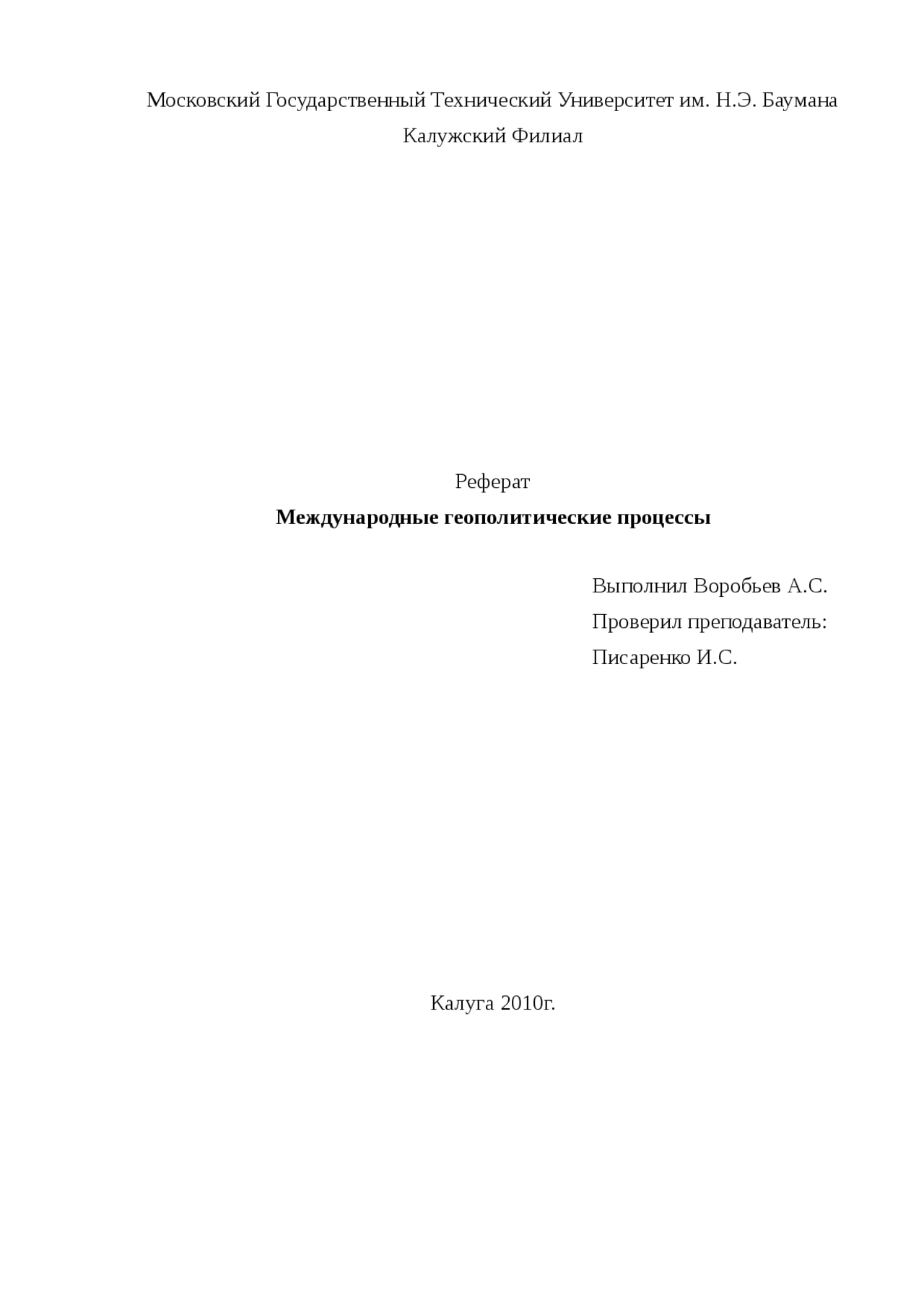 Реферат по теме Международные геополитические процессы