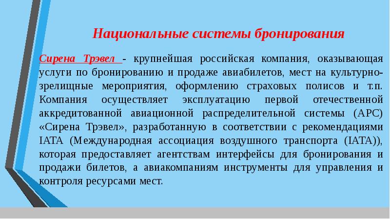 Системы бронирования и резервирования в туризме - Реферат , страница 1 . На сегодняшний день в мире насчитывается несколько сотен авиакомпаний с тысячами воздушных судов, по маршрутам курсируют множества поездов, кораблей и, наконец, автобусов дальнего следования . В . . .