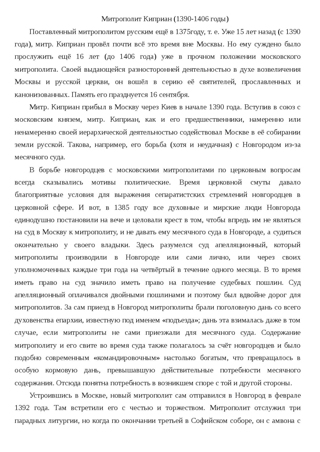 Реферат по теме Митрополит Киприан (1390-1406)