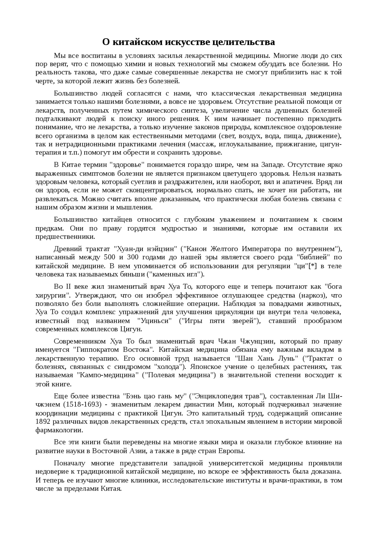 Реферат: О китайском искусстве целительства - Xreferat .com . . .