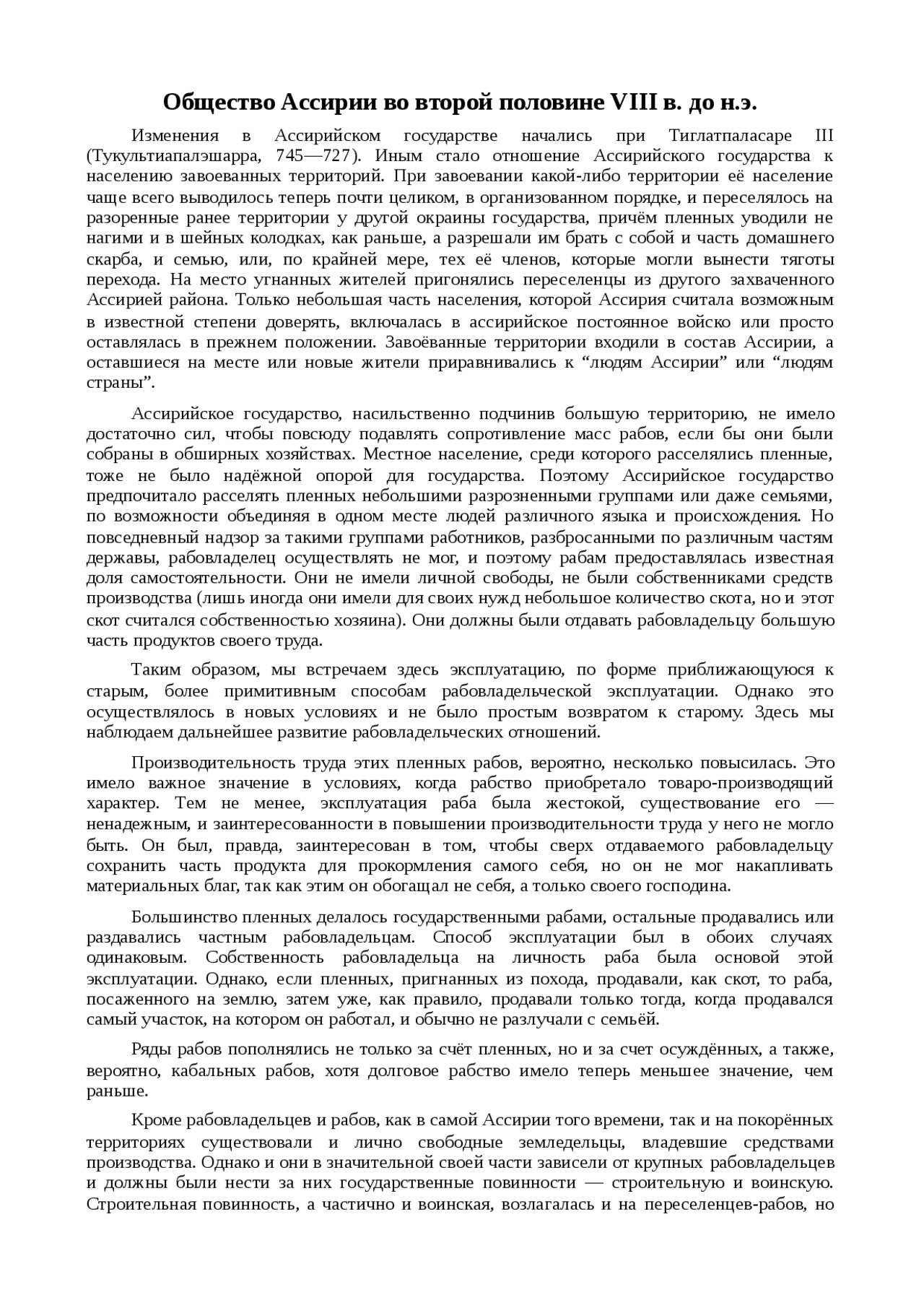 Реферат по теме Общество Ассирии во второй половине VIII в. до н.э.