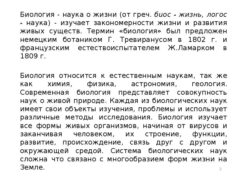 Особенности биологического уровня организации материи . К естественным наукам относится и биология — наука о живом, его строении, формах активности, природных сообществах живых организмов, их распространении и развитии, связях друг с другом и с неживой природой . . .