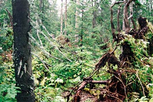 Для естественных таежных лесов Европейского Севера России основное значение имеют два вида динамики случайных нарушений - динамика, связанная с развитием популяций древесных пород в отсутствие катастрофических нарушений (оконная, или вывальная динамика), и динамика . . .