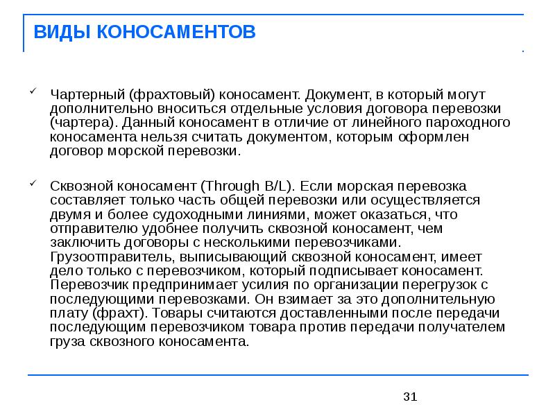 Коносамент: понятие и виды