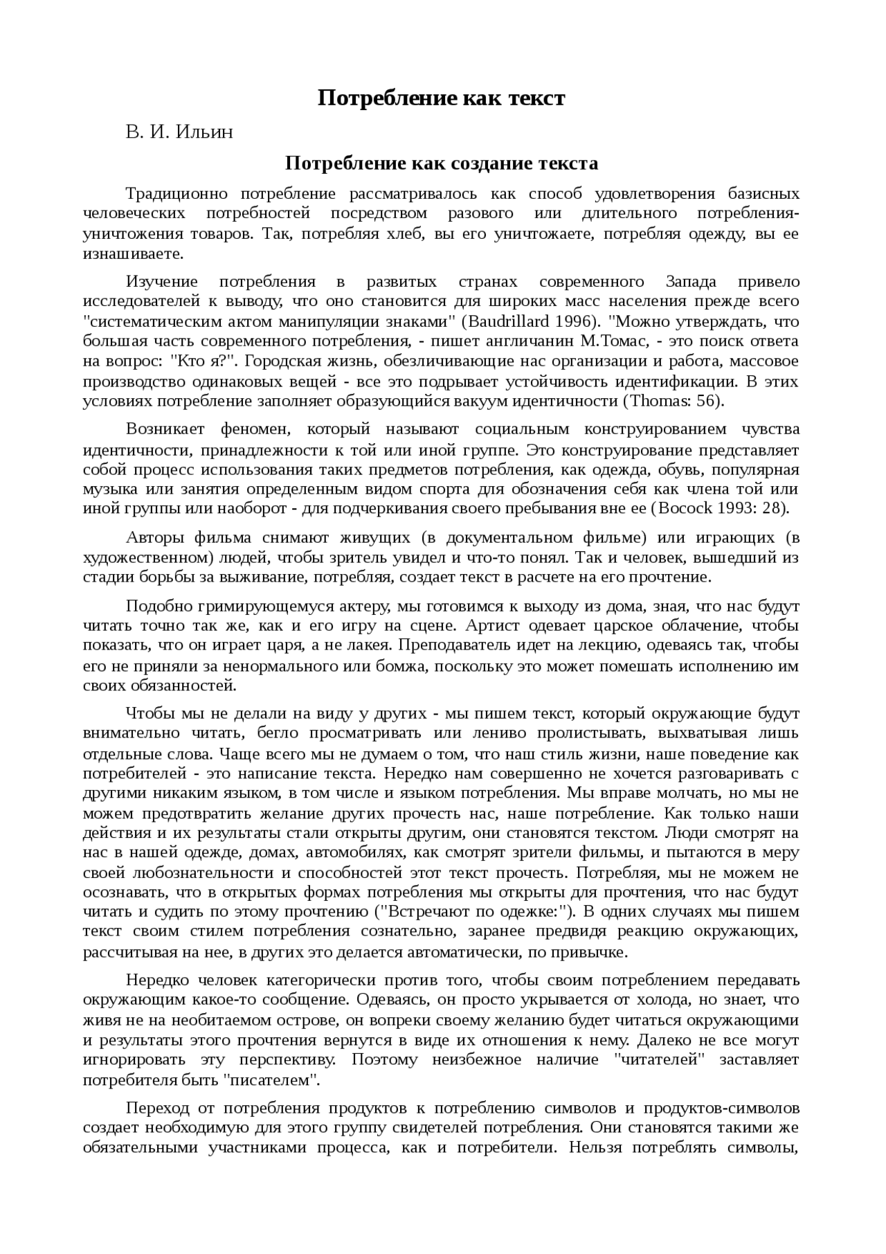 Реферат по теме Потребление как текст