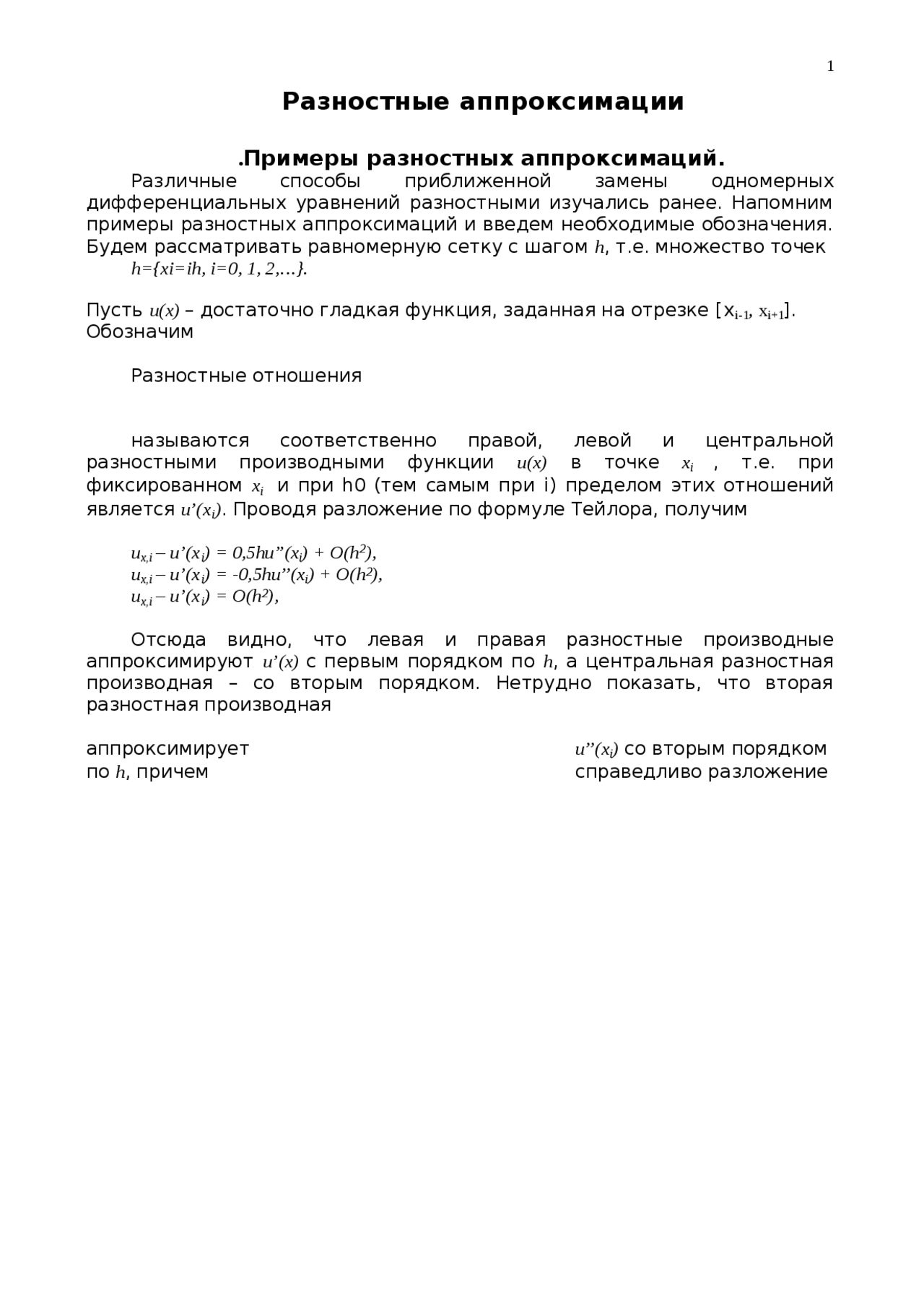 Реферат по теме Примеры разностных аппроксимаций