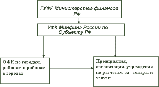 Казначейская система исполнения бюджета состоит в том, что при ней между налогоплательщиками и бюджетополучателями, с одной стороны, и банками, с другой — встраивается особая контролирующая структура — казначейство .