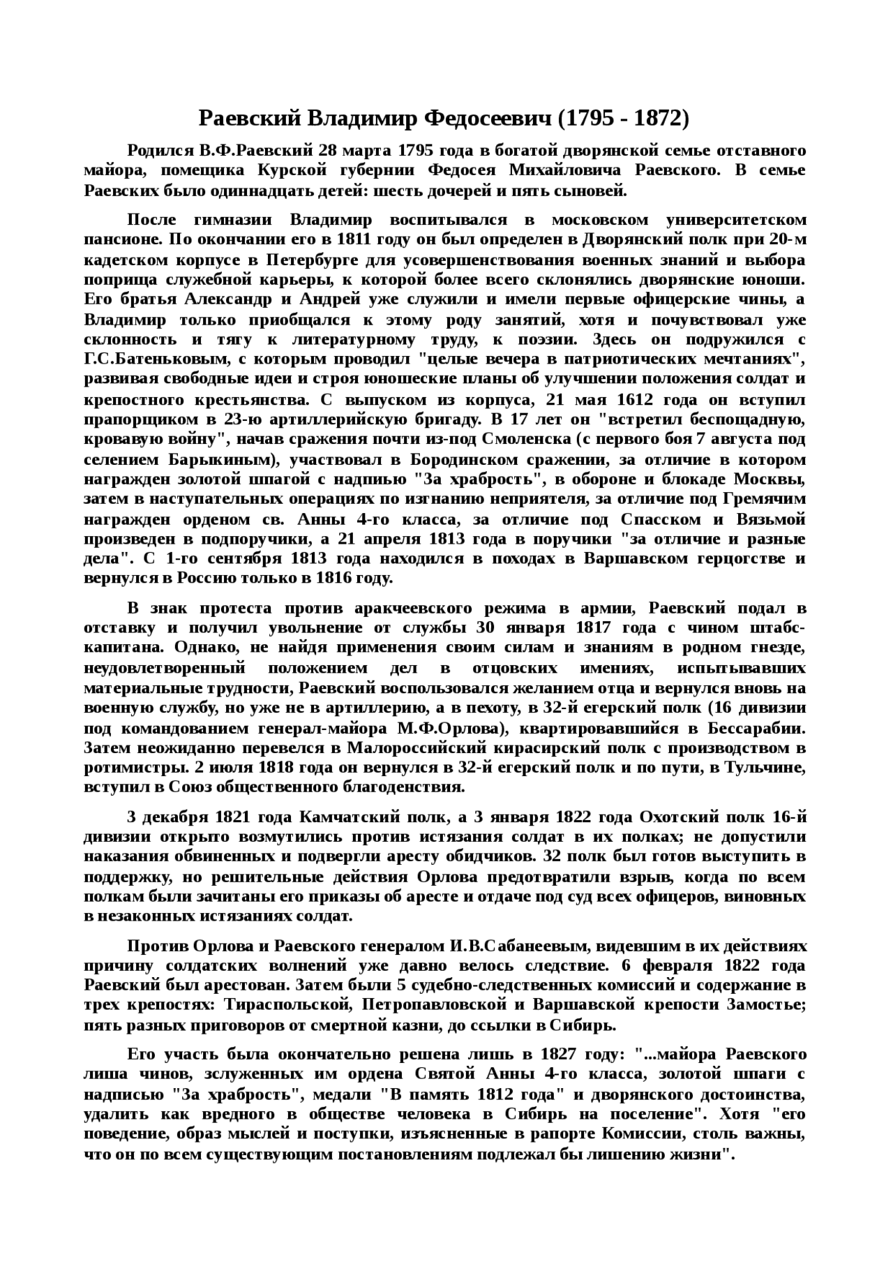 Реферат: Раевский Владимир Федосеевич (1795 - 1872 . . .