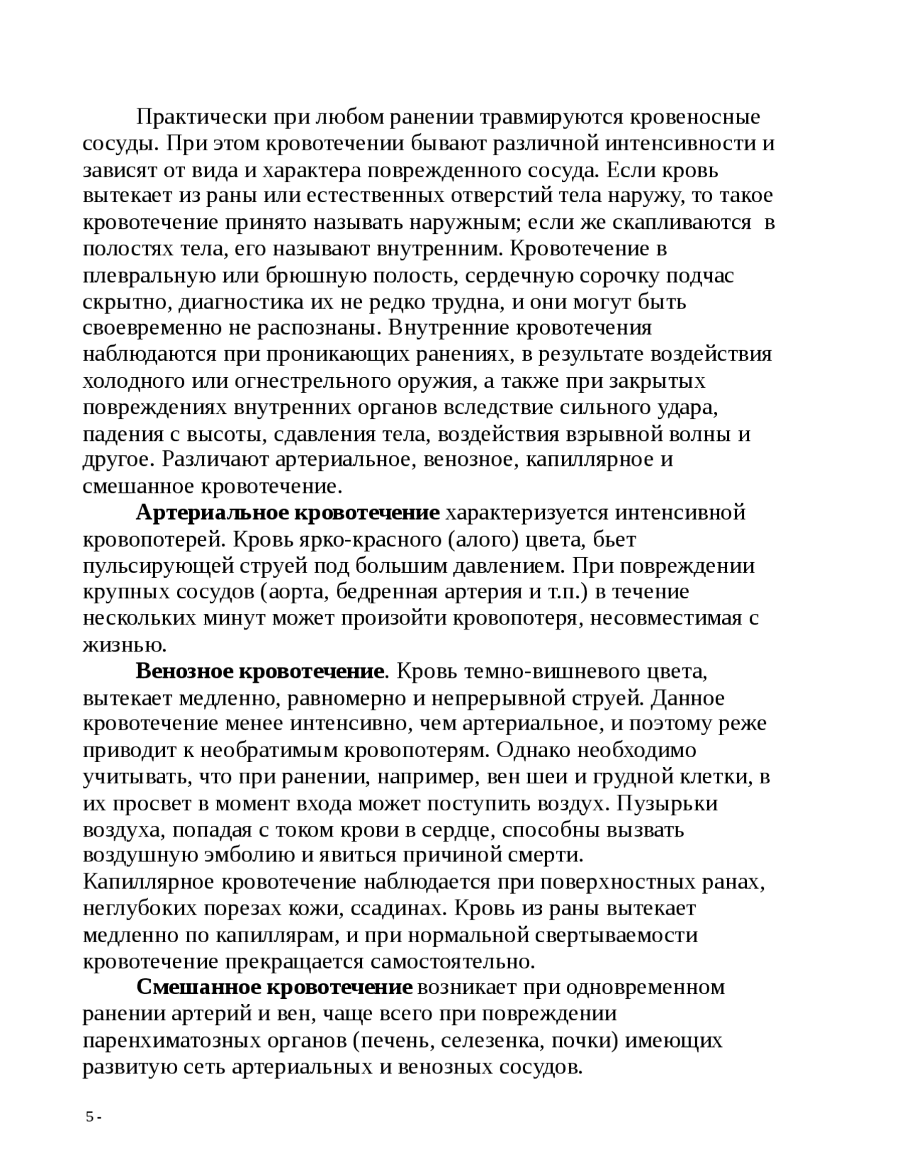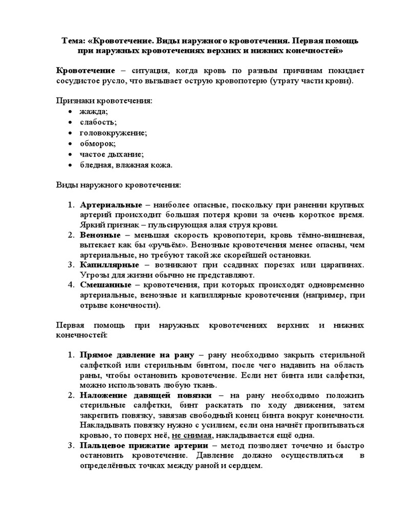 Реферат: Виды кровотечений и первая медицинская помощь при . . .
