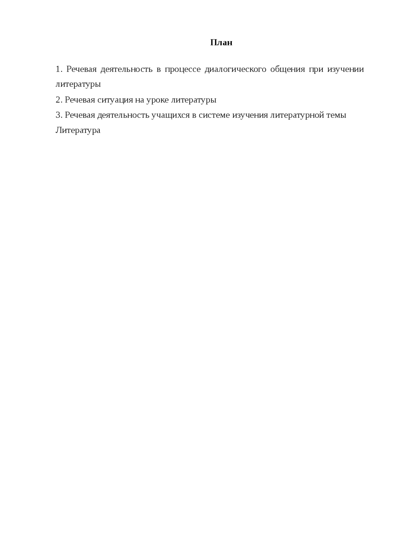 1 . Речевая деятельность в процессе диалогического общения при изучении литературы . 2 . Речевая ситуация на уроке литературы . 3 . Речевая деятельность учащихся в системе изучения литературной темы