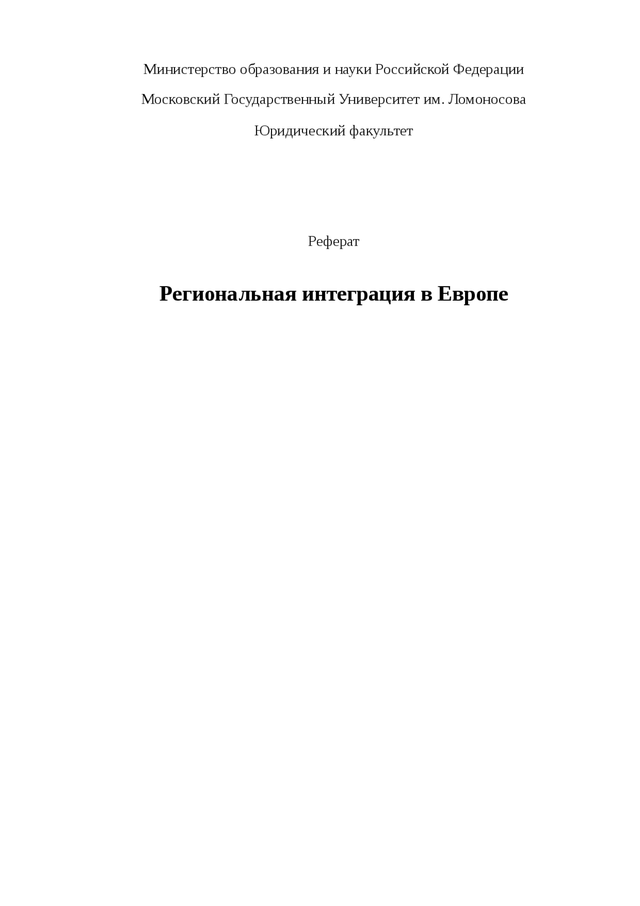 реферат по предмету Краеведение и этнография на тему: Региональная интеграция в Европе - понятие и виды, структура и классификация, 2017, 2018-2019 год .