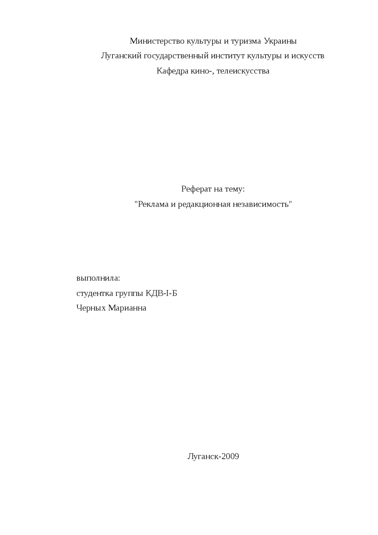 Реферат по теме Реклама и редакционная независимость